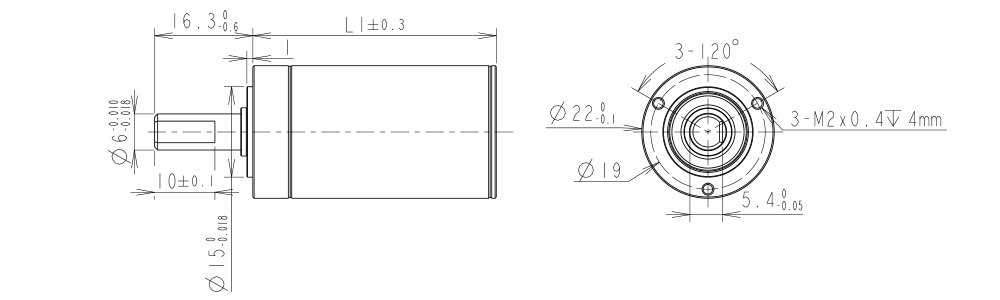 | 齿轮箱长度L1(mm) | 24.3 | 32.8 | 40.4 | 46.5 | 52.6 |
