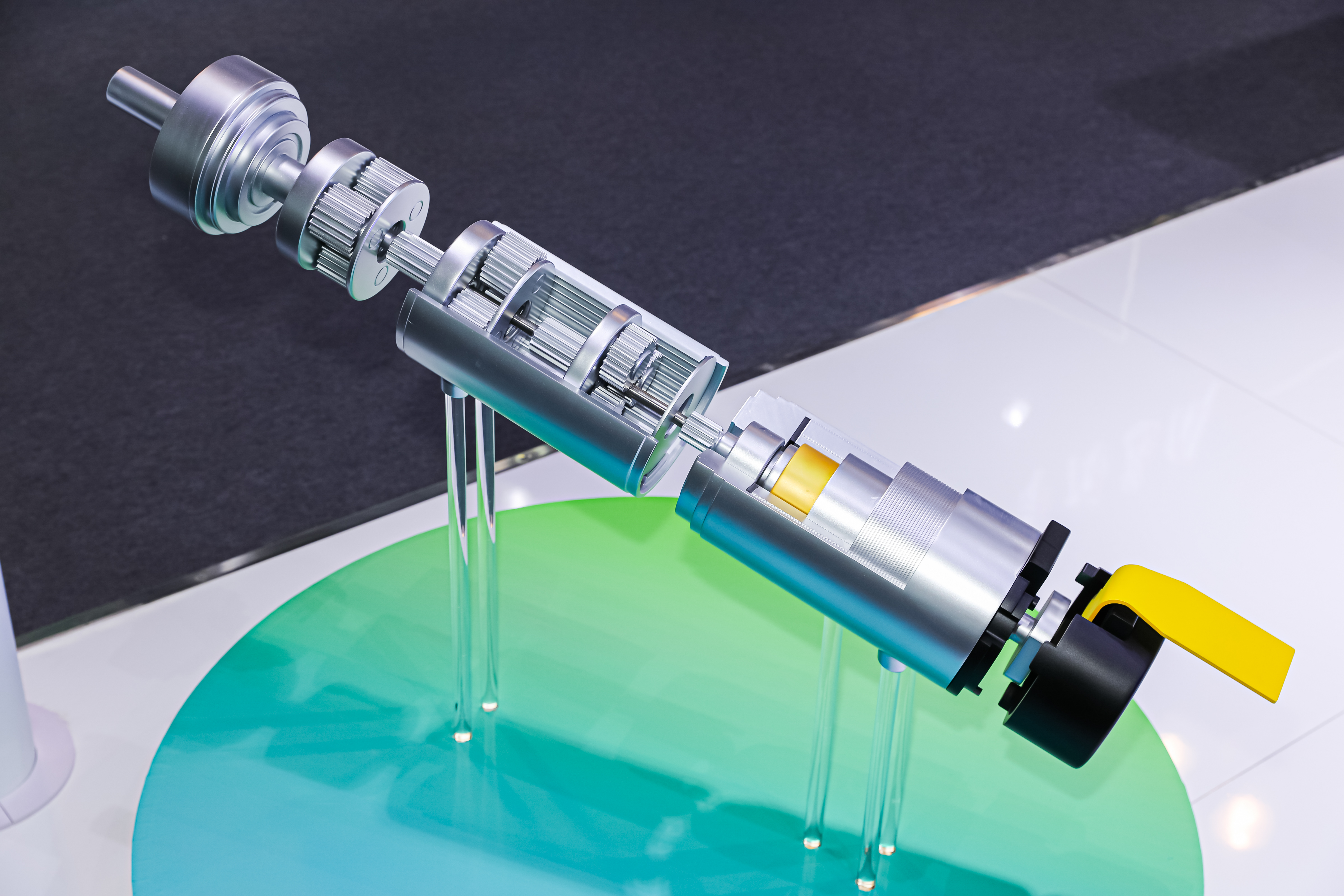 在工业阀门驱动控制领域,本次j9国际站登录机电共展出两款最新研发成果:工业阀门执行器和点胶机螺杆阀门驱动系统。j9国际站登录机电阀门执行器采用塑料外壳+粉末冶金齿轮一体化设计,可满足IP54防护等级要求。执行器内部搭载步进电机,具有体积小、噪音低、负载能力大、使用寿命长等特点。点胶机螺杆阀驱动系统则采用标准行星减速齿轮箱+空心杯无刷电机的组合,通过高灵敏驱动电机控制阀门运动,帮助点胶机实现稳定吐胶效果,具有噪音低、高精度等特点。系列电机产品均可根据客户具体应用场景定制防尘防水耐高温功能。